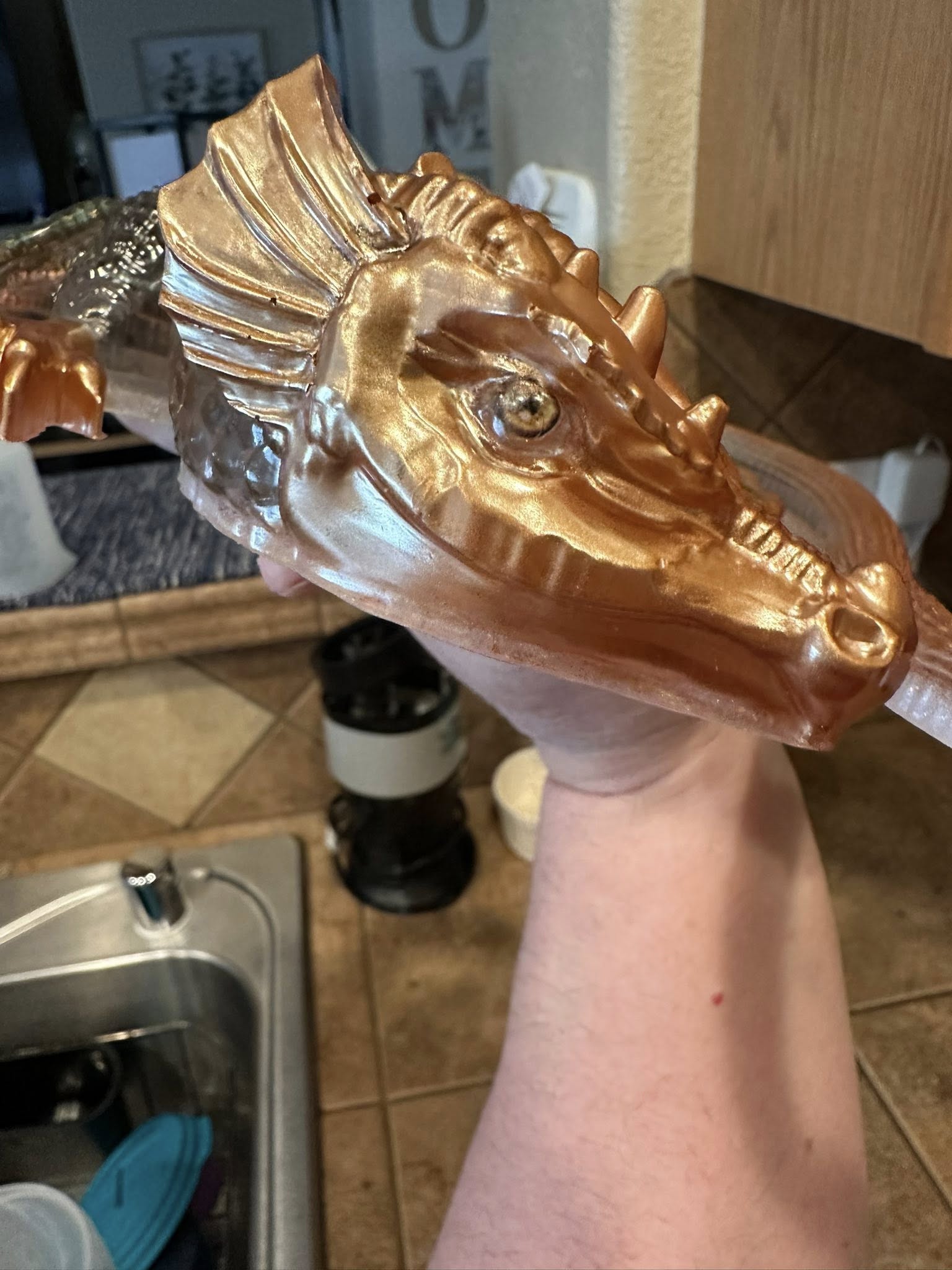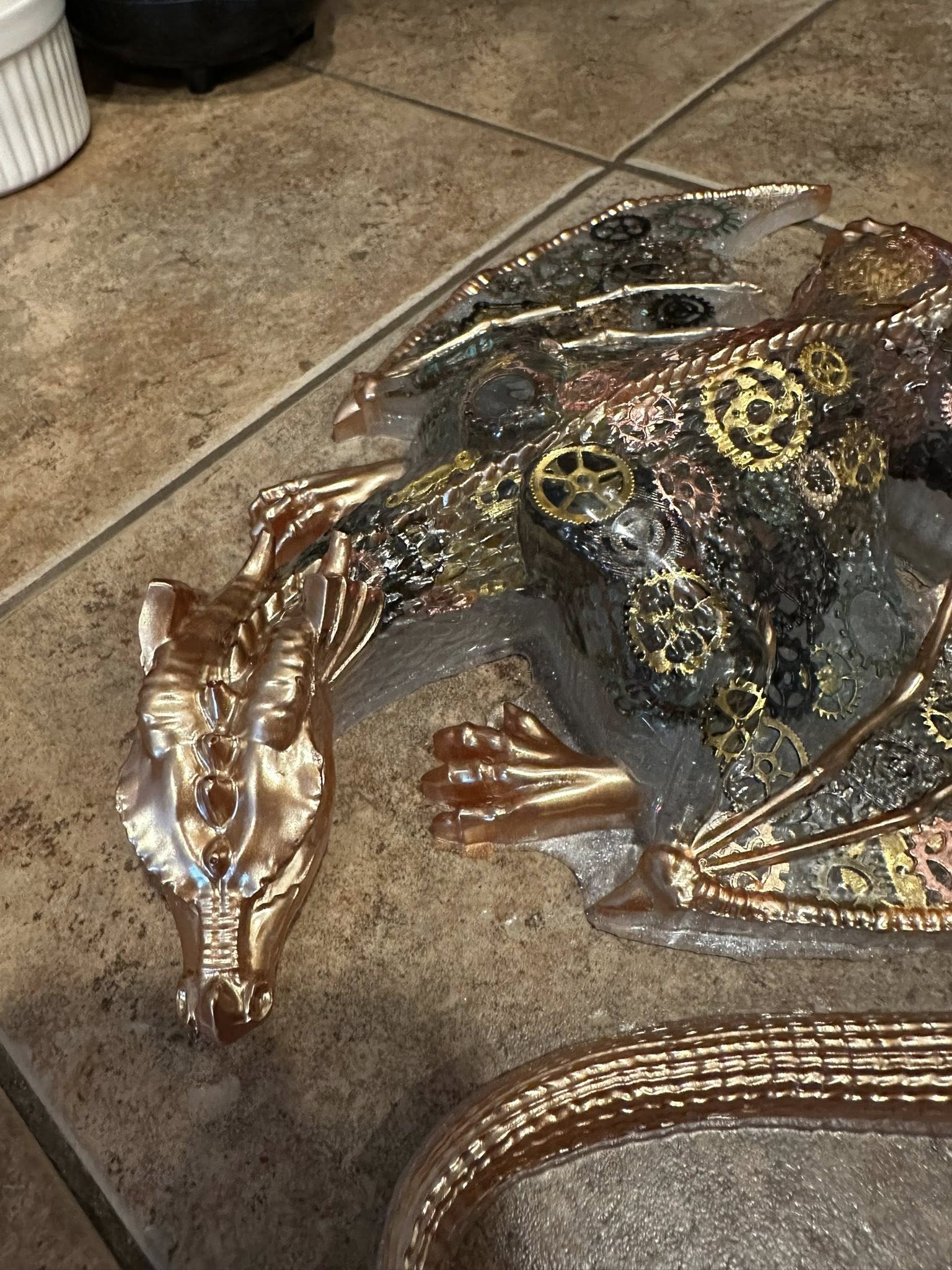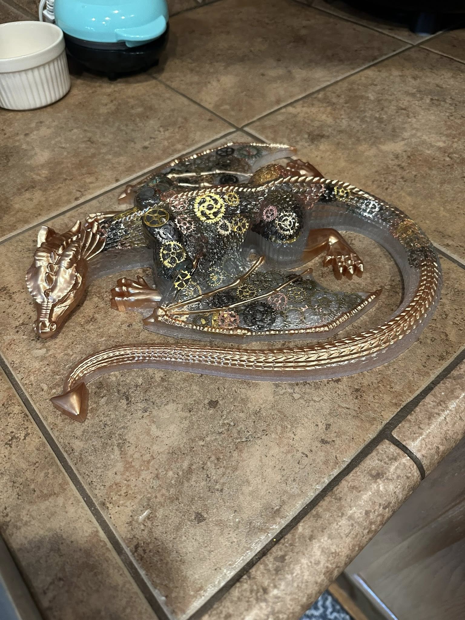 Beautiful steam punk, Extra large blue dragon. Made with epoxy, Gold mecha powder, steam punk gear charms, and about 4 days. I love making these and can make custom for you. I hope you love this beauty as much as I loved making it.